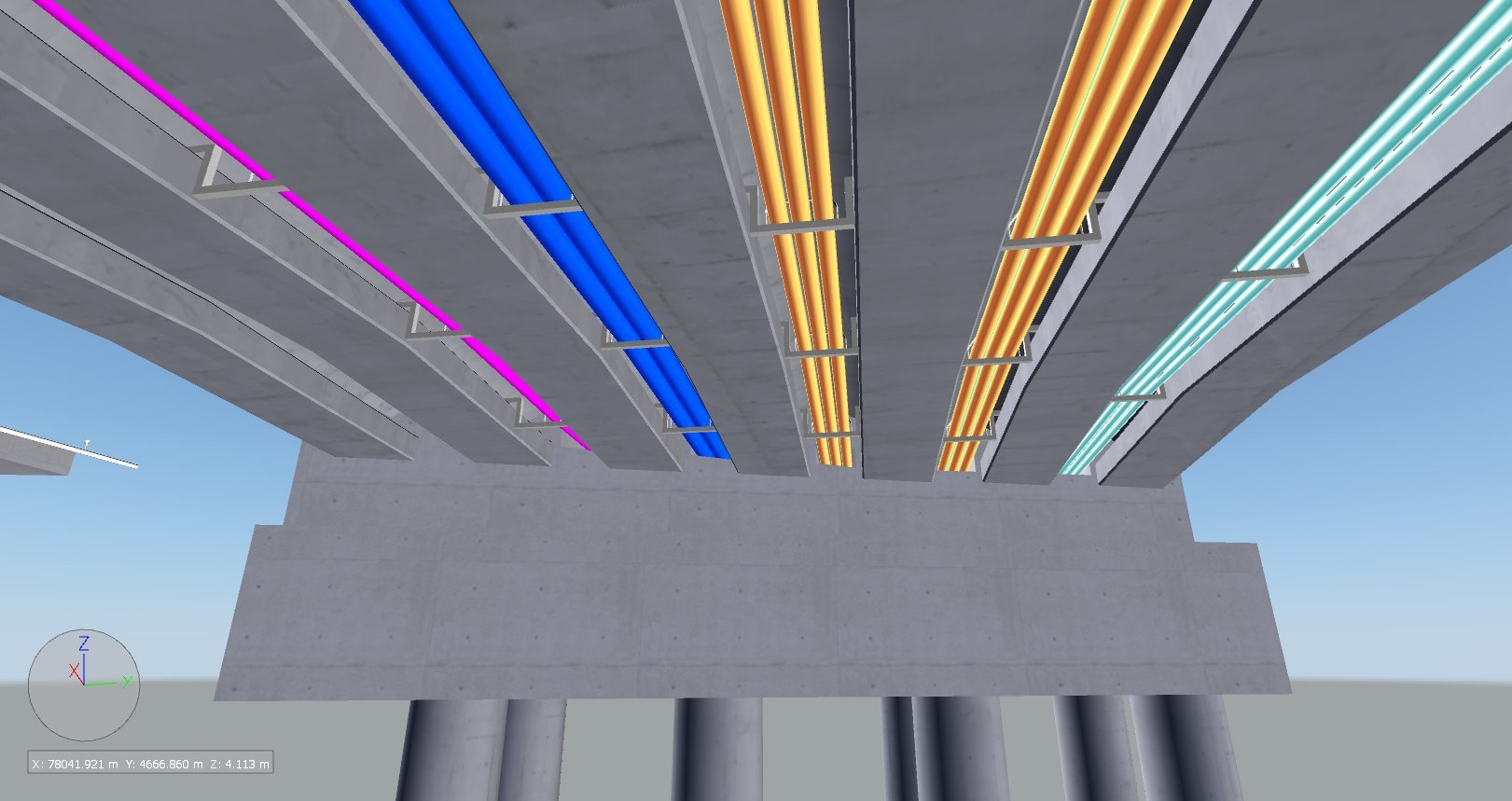 八田橋BIM/CIMデータは、詳細度(LOD)400クラスの精度で構築し設計段階から鉄筋干渉確認や図面照査、基礎や桁との接合部構造の設計協議、住民説明や富山市WEBサイトの公開等に活用しつつ、完成度の高いBIM/CIMデータを富山市へ提供できました。